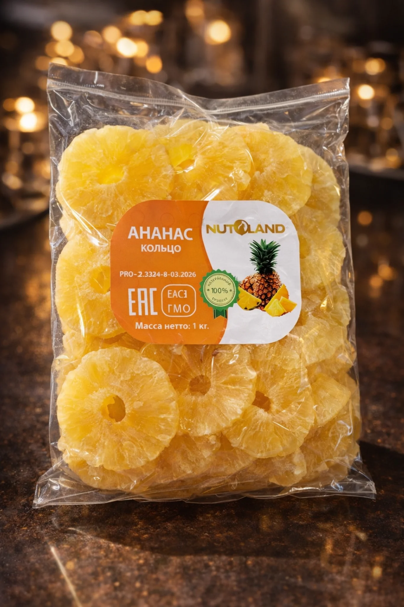 Тропический сухофрукт из спелых долек ананаса, высушенных бережным способом для сохранения естественного вкуса и аромата. Обладает ярким сладким вкусом с легкой кислинкой