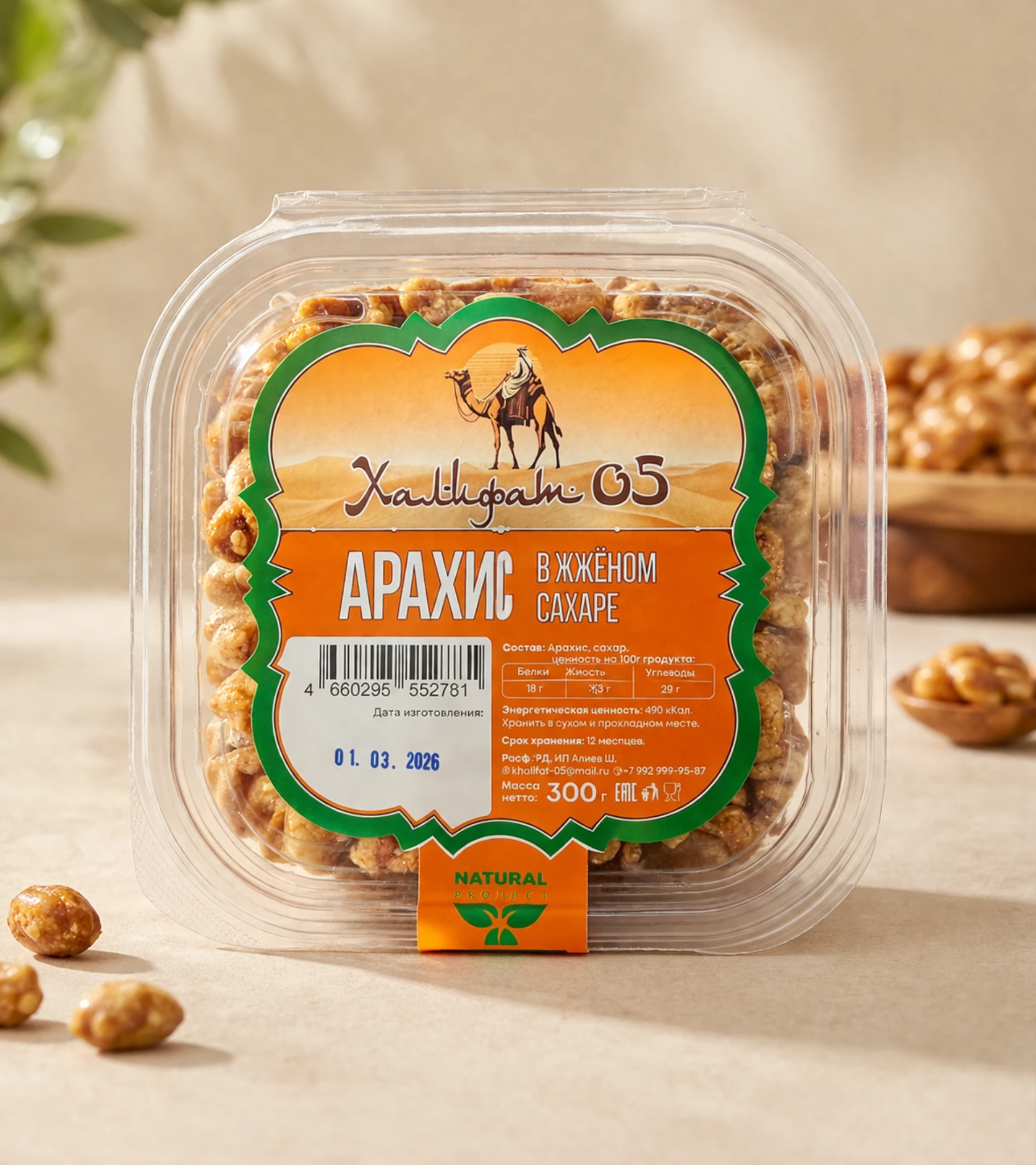 Обжаренные ядра арахиса, покрытые карамелизированным сахаром, образующим хрустящую янтарную корочку с легкими карамельными нотами. Такой ореховый десерт отличается насыщенным вкусом