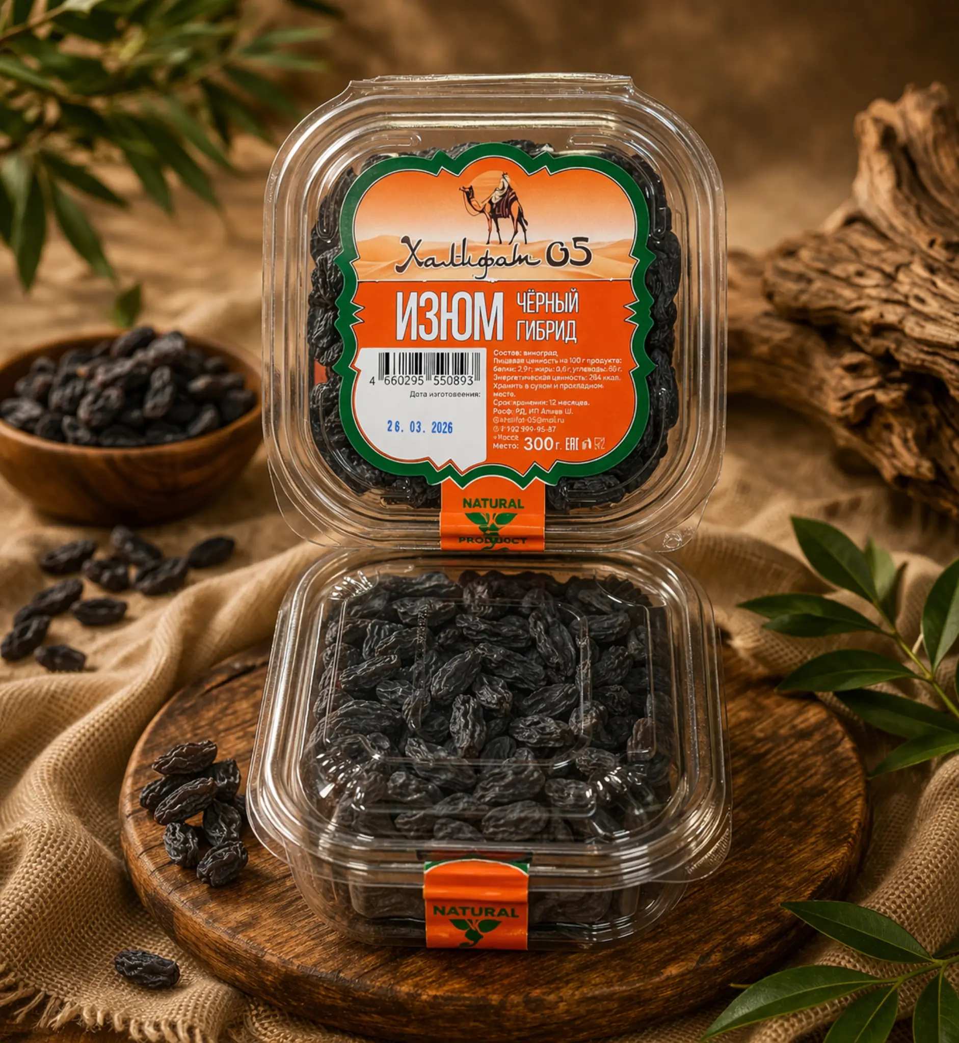 Тёмный изюм без косточек из сладких сортов винограда, отличающийся насыщенным почти чёрным цветом, мягкой текстурой и выраженным сладким вкусом с лёгкой винной ноткой