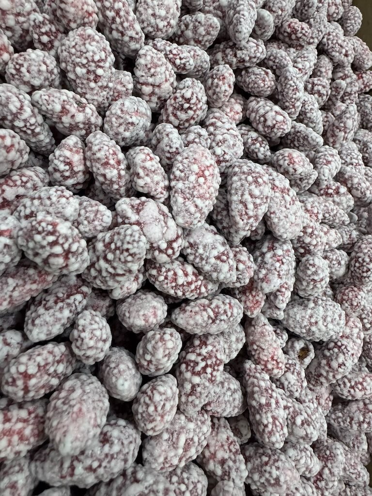 Обжаренные ядра миндаля, покрытые хрустящей сахарной глазурью, которая образует характерную «колючую» поверхность, напоминающую ёжика. В составе обычно только миндаль, сахар и пищевой краситель, а готовый продукт сочетает насыщенный ореховый вкус с яркой сладостью и приятным хрустом.