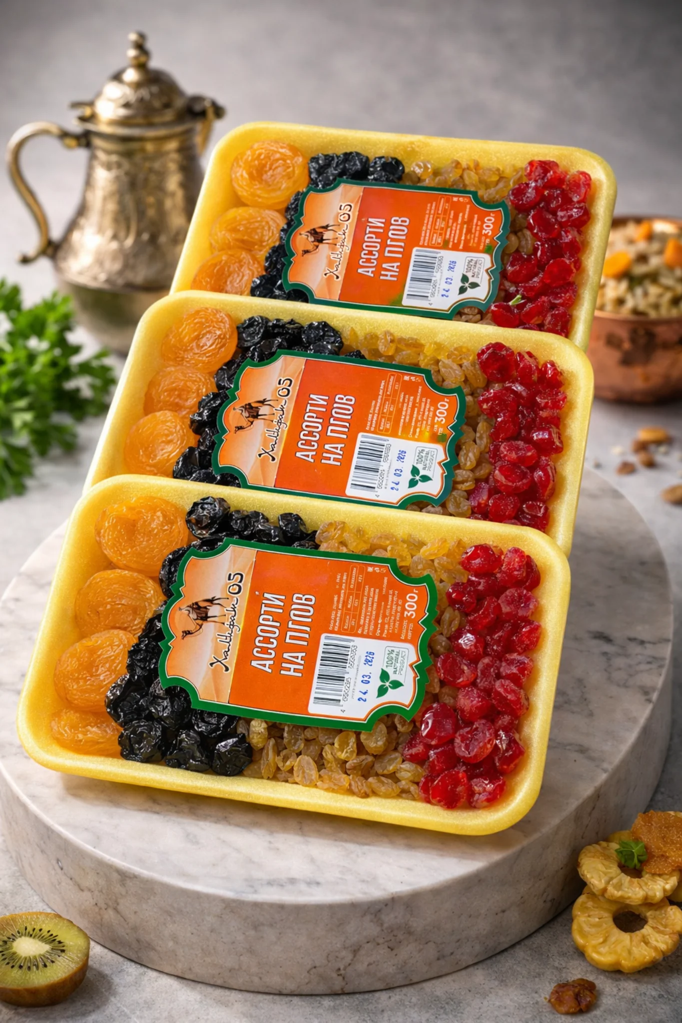 Специальный микс отборных ягод, подобранных так, чтобы идеально раскрывать вкус классического восточного плова. Мягкий сладковатый изюм добавляет блюду аппетитный аромат, лёгкую карамельную сладость и делает подачу более нарядной за счёт сочетания тёмных и светлых ягод. Смесь удобно использовать не только для плова, но и для плова с бараниной, плова с курицей, плова в казане и других горячих блюд на основе риса