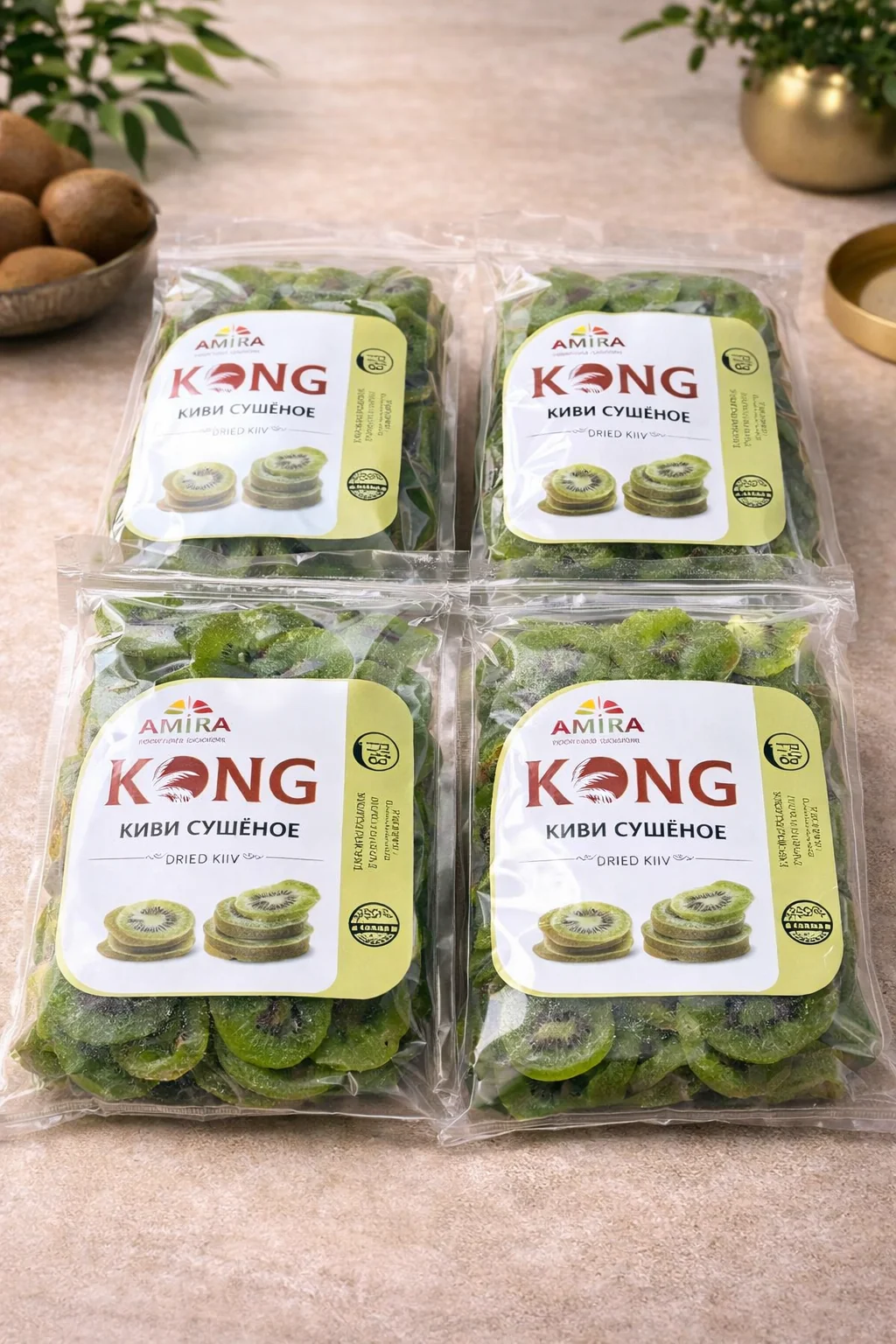 Спелые кусочки киви, аккуратно высушенные для сохранения характерного кисло‑сладкого вкуса и свежего аромата. Яркий цвет и выраженный вкус делают его удобной и полезной альтернативой обычным сладостям.
