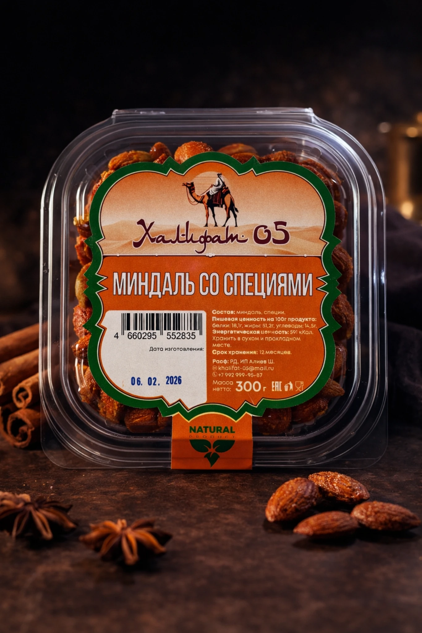 Обжаренные ядра миндаля, покрытые смесью соли и пряностей, которые усиливают ореховый вкус и добавляют яркий аромат. Такой продукт обычно делают на растительном масле: миндаль обжаривают до золотистого цвета, затем щедро обваливают в специях, чтобы каждая орешка получила пряную оболочку